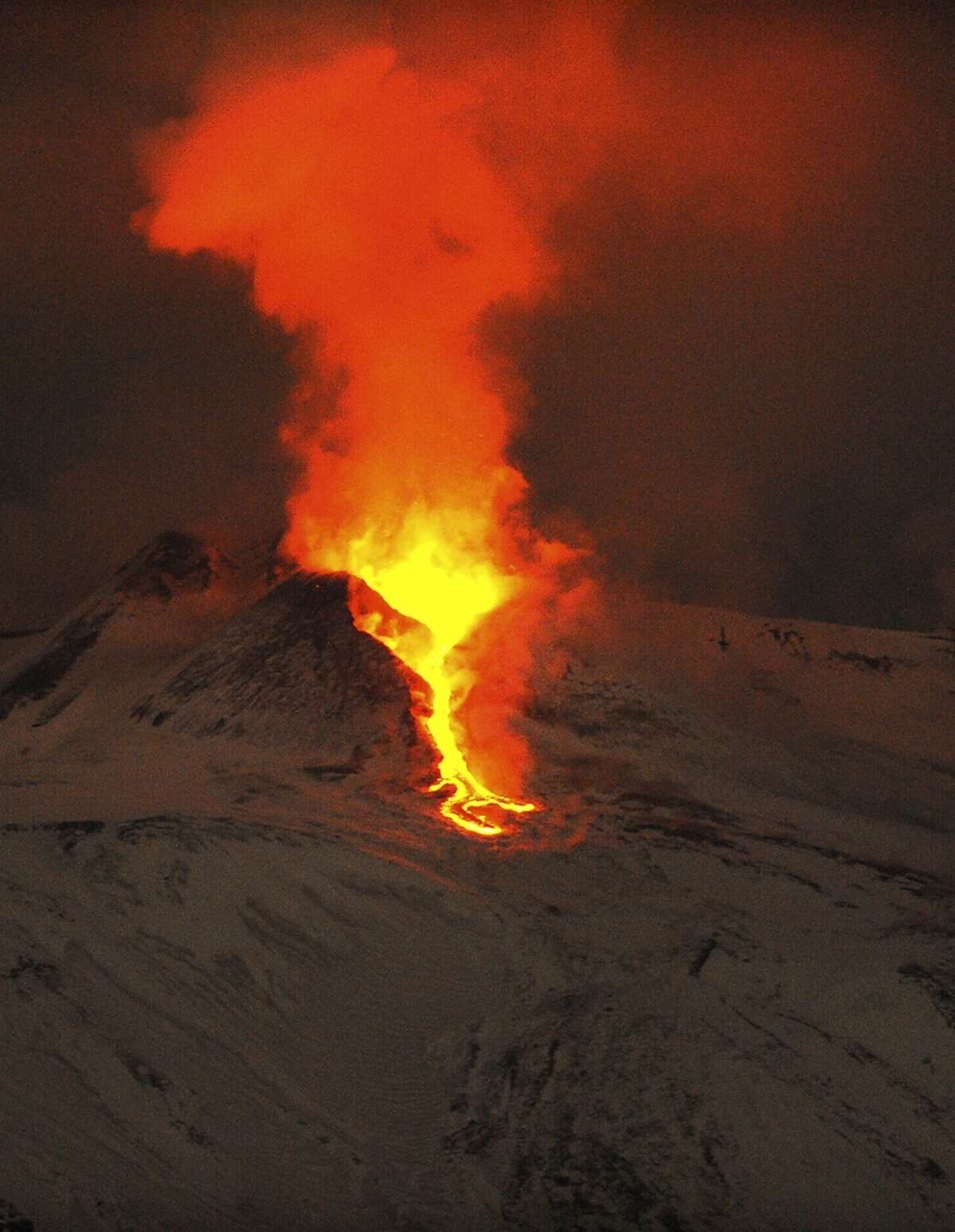 Etna Eruption Snow , Mount Etna Eruption Sends Lava Spewing And Huge Column Of Gas Into Night Sky - World News ...
